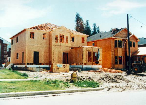 定向結(jié)構(gòu)刨花板OSB(ORIENTED STRAND BOARD)用100%原木為原料,試用特殊設(shè)計(jì)的刀具把原木刨切成特定尺寸的木片,在電腦控制下給木片施加上定量的蠟和耐久性的熱固性樹(shù)脂,經(jīng)多層制作定向鋪裝后,高溫?zé)釅憾傻囊环N多層結(jié)構(gòu)板材。
