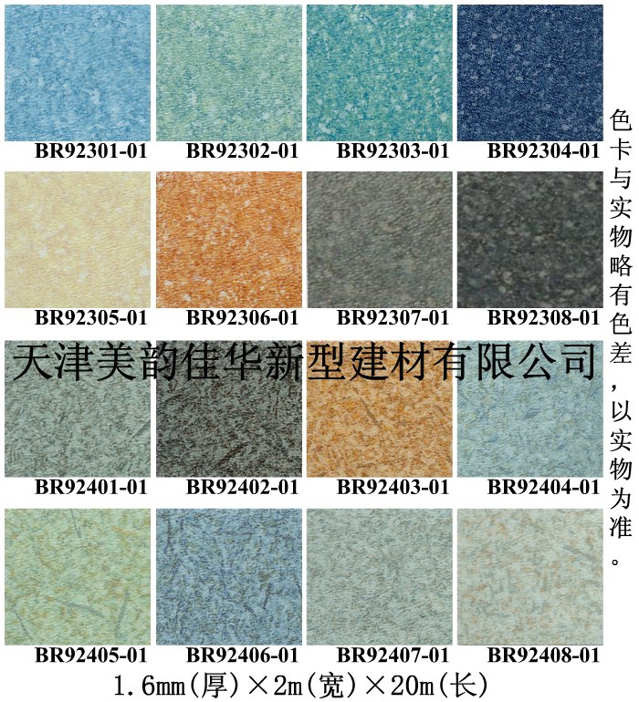 產(chǎn)地/廠家:韓國(guó)/LG樂金新型建材 品牌:LG 規(guī)格(mm):1.6mm(厚)×2m(寬)×20m(長(zhǎng)) 包裝(㎡/卷):40 耐磨層(mm):0.35 耐磨性(轉(zhuǎn)):1500 阻燃等級(jí):B1 適合場(chǎng)合:商業(yè)、工廠、學(xué)校、醫(yī)院、家居、幼兒園、健身房、辦公樓 產(chǎn)品特性:1使用壽命長(zhǎng),產(chǎn)品具有較強(qiáng)的表面強(qiáng)度以保證優(yōu)良的抗沖擊性和長(zhǎng)久的使用壽命; 2抗污,易清洗,表面進(jìn)行了UV處理,具有防污易清掃的特性; 3施工簡(jiǎn)便,最佳設(shè)計(jì),施工方便,用途廣泛; 4具有環(huán)保性,不采用天然原木和石材,不破壞自然資源