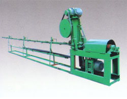 直絲機(jī)該機(jī)結(jié)構(gòu)是由高速轉(zhuǎn)子旋轉(zhuǎn)調(diào)整直絲模角度,達(dá)到調(diào)直的效果,然后通過叨絲輪向前叨絲。達(dá)到要求尺寸后,絲碰到定位鍵后把跑道向前進(jìn)推進(jìn)5毫米,上方?jīng)_頭壓住豎切絲刀就立刻切斷,絲通過豎絲刀上的壓板壓住開口軸承,絲就自動(dòng)掉至托絲架,如果要改變長度,就移動(dòng)定位鍵。